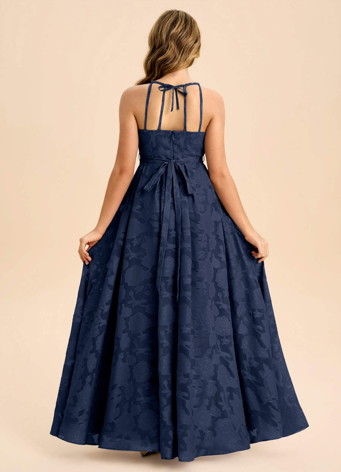 Dark Navy A-Line Pleated Floral Burnout Dress