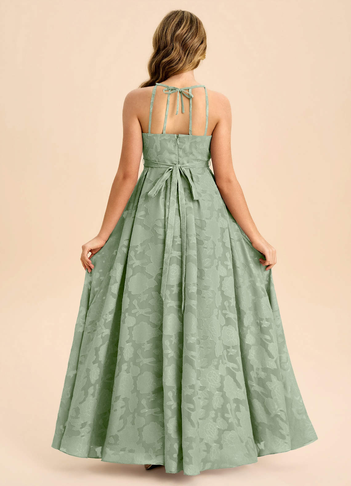 Dusty Sage A-Line Pleated Floral Burnout Dress