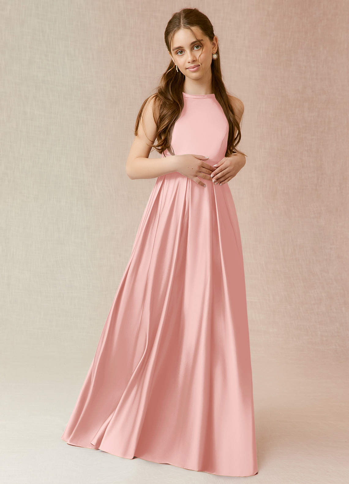 Powder Pink A-Line with Pockets Stretch Satin Dress
