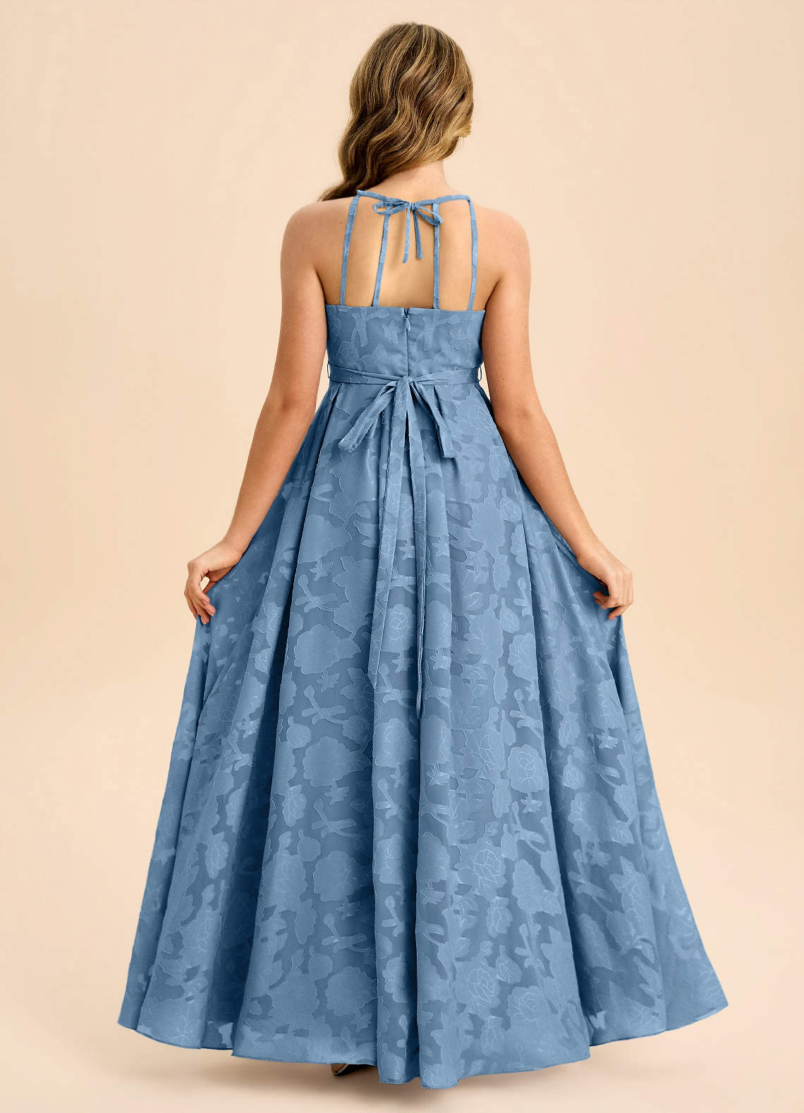 Steel Blue A-Line Pleated Floral Burnout Dress