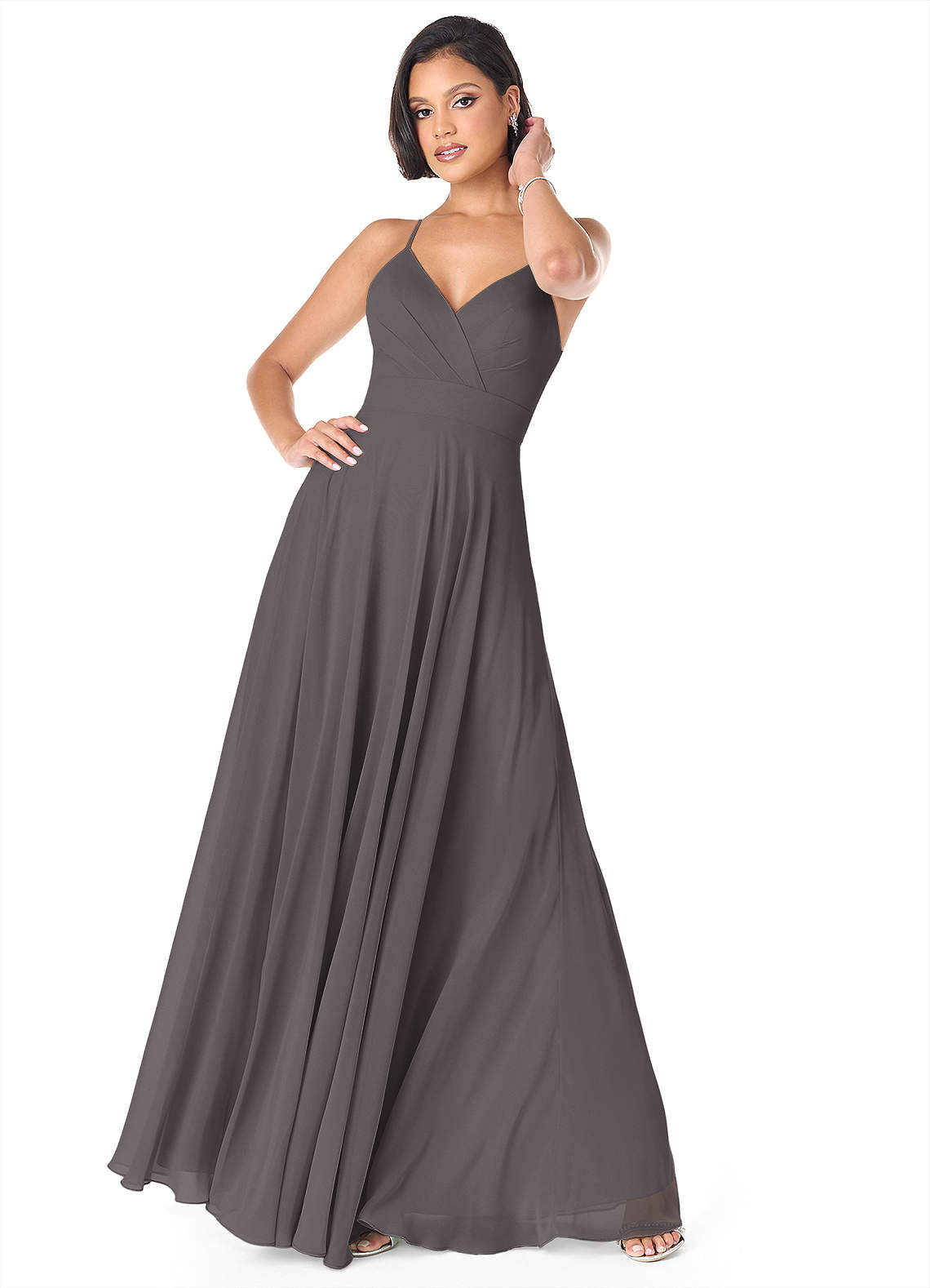 Steel Grey A-Line V-Neck Pleated Chiffon Dress