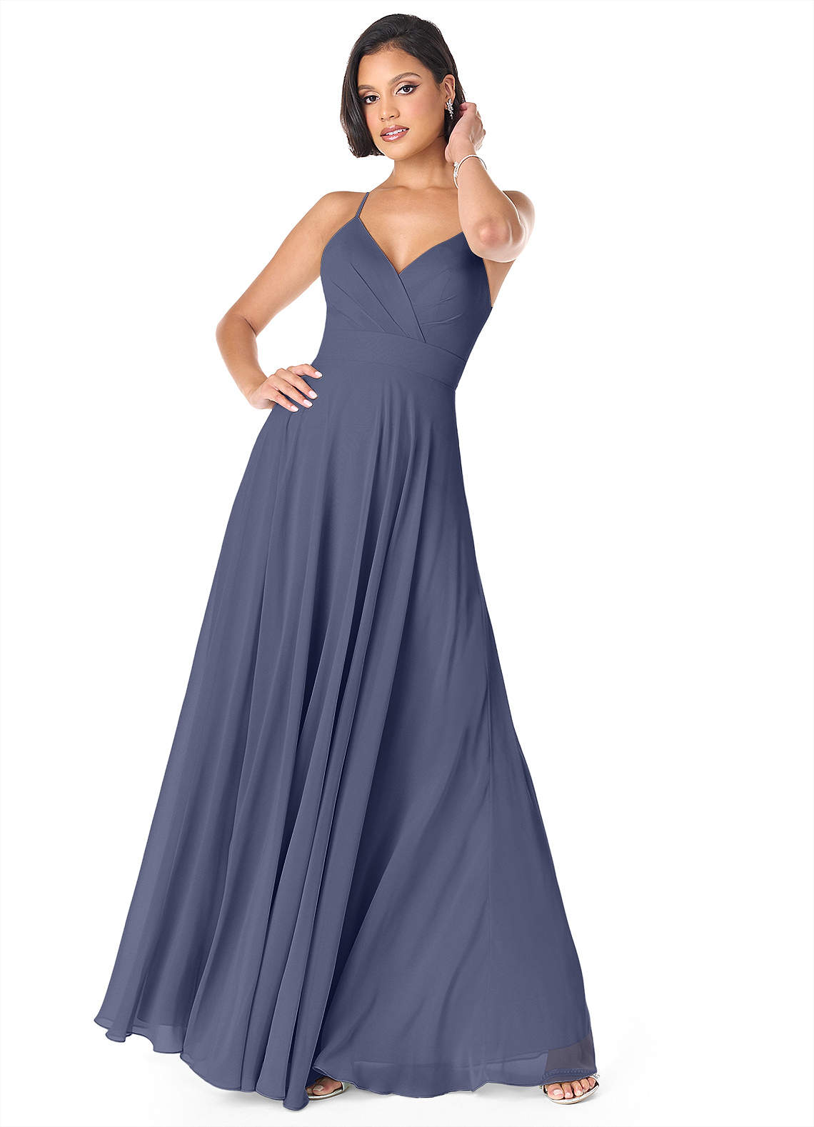Stormy A-Line V-Neck Pleated Chiffon Dress