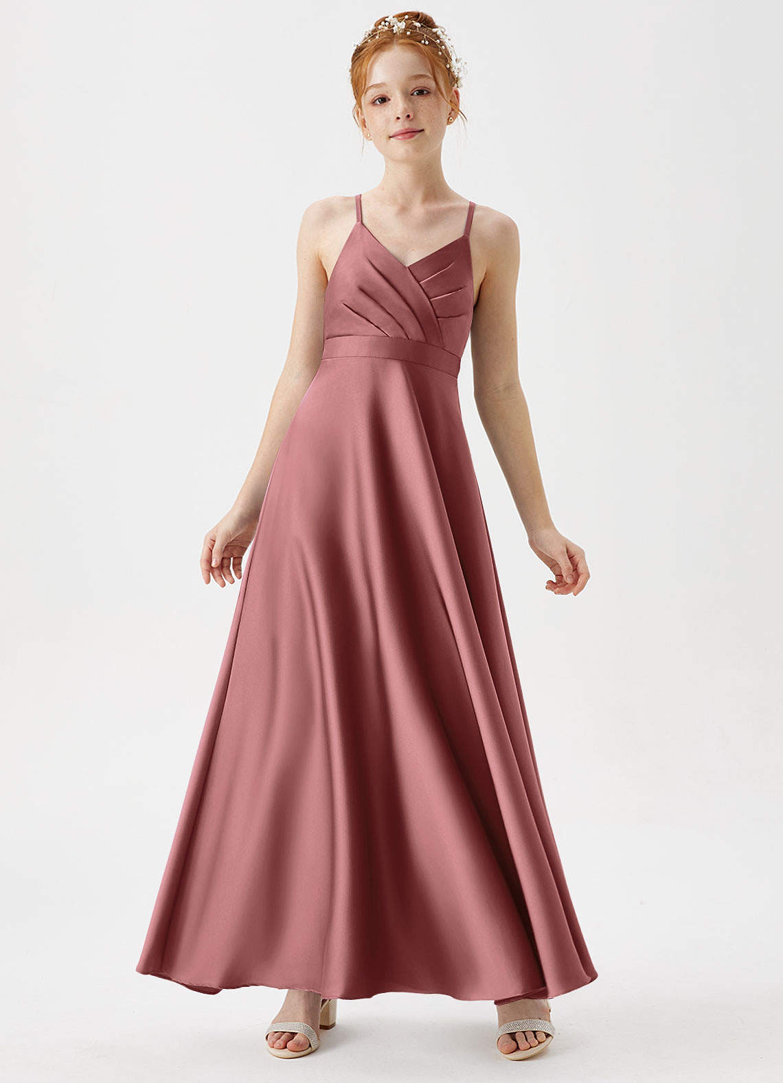 Amethyst A-Line Pleated Stretch Satin Dress