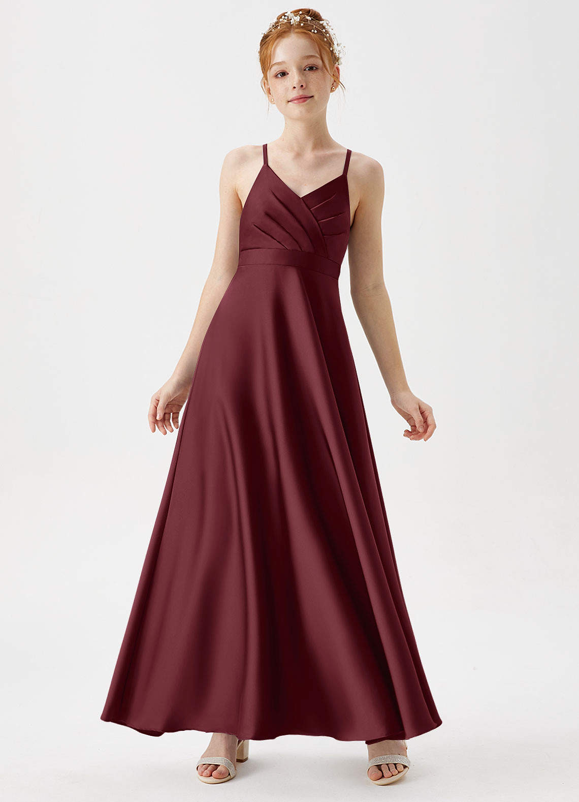 Cabernet A-Line Pleated Stretch Satin Dress