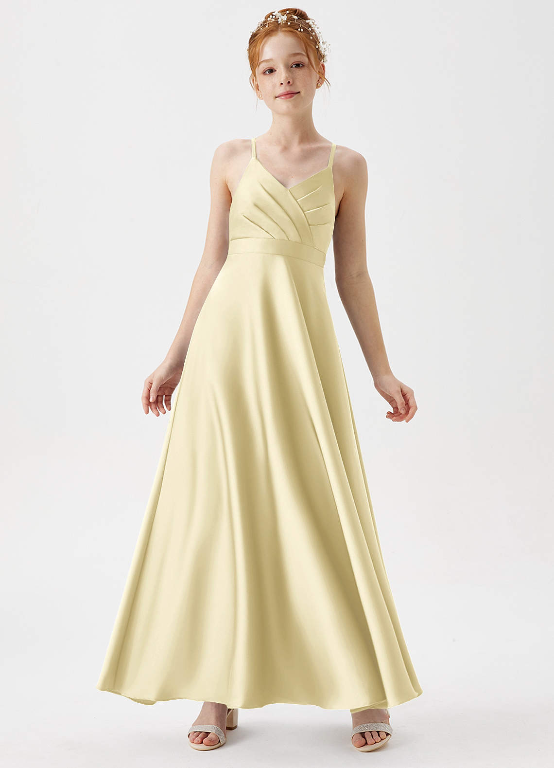 Lemon Sorbet A-Line Pleated Stretch Satin Dress