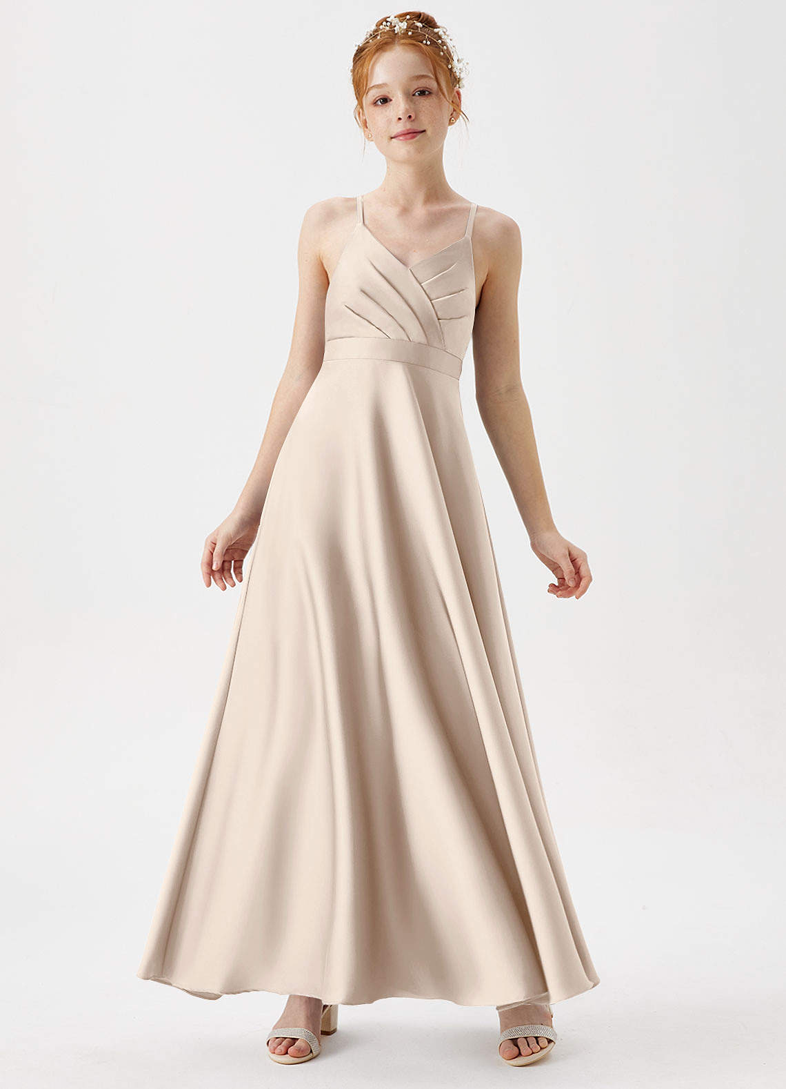 Azazie Avelina Junior White Alabaster A-Line Pleated Stretch Satin Dress image1