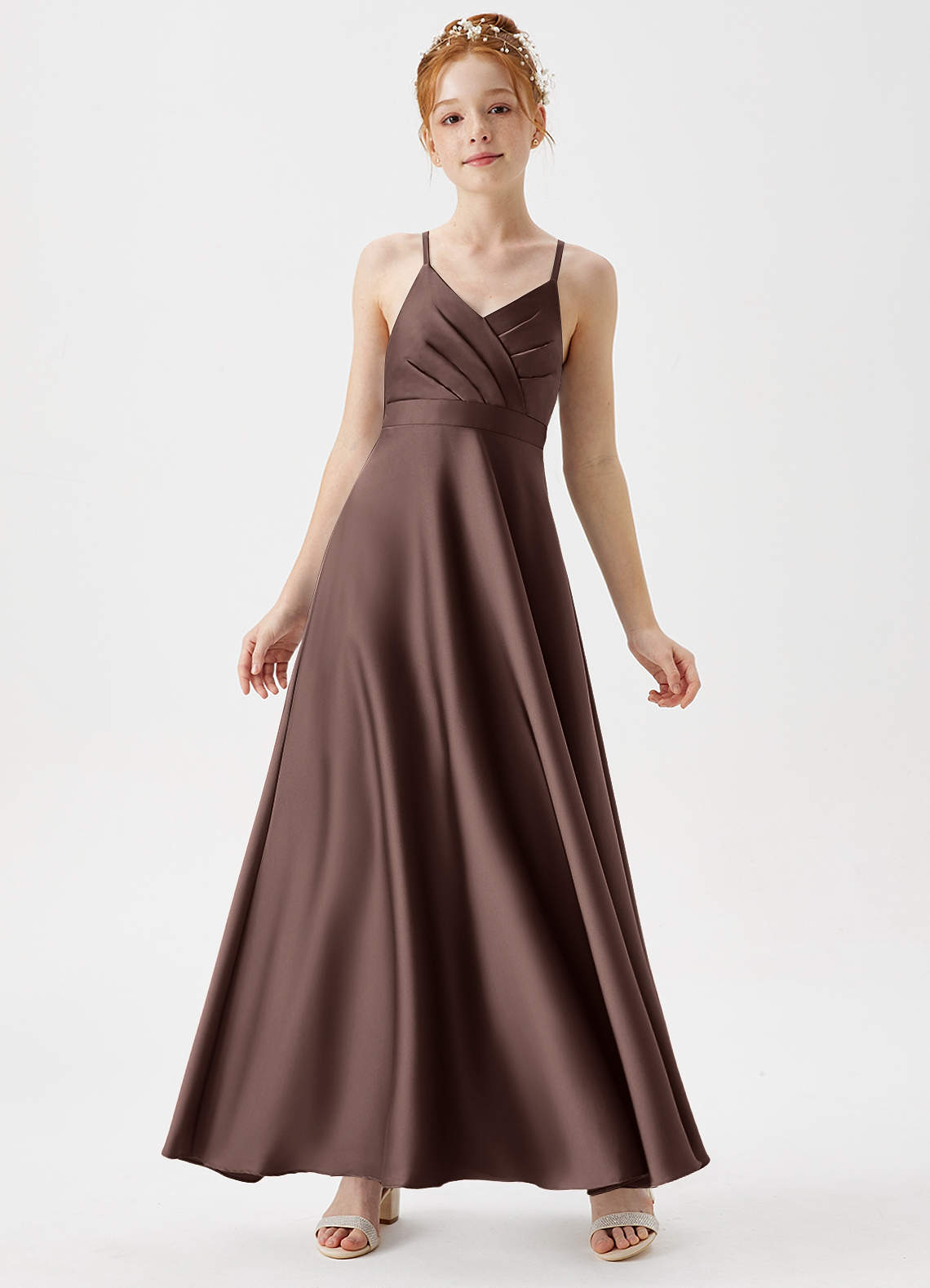 Ganache A-Line Pleated Stretch Satin Dress
