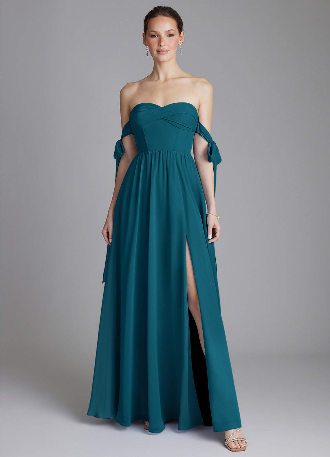Ink Blue A-Line Off the Shoulder Chiffon Dress