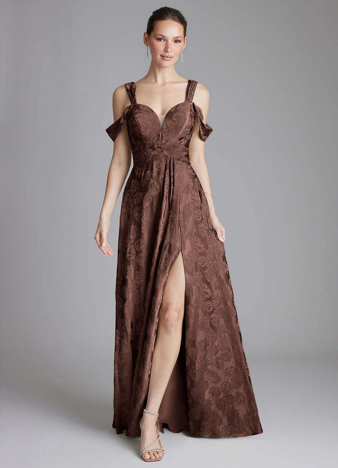 Chocolate Jacquard A-Line Off the Shoulder Jacquard Dress