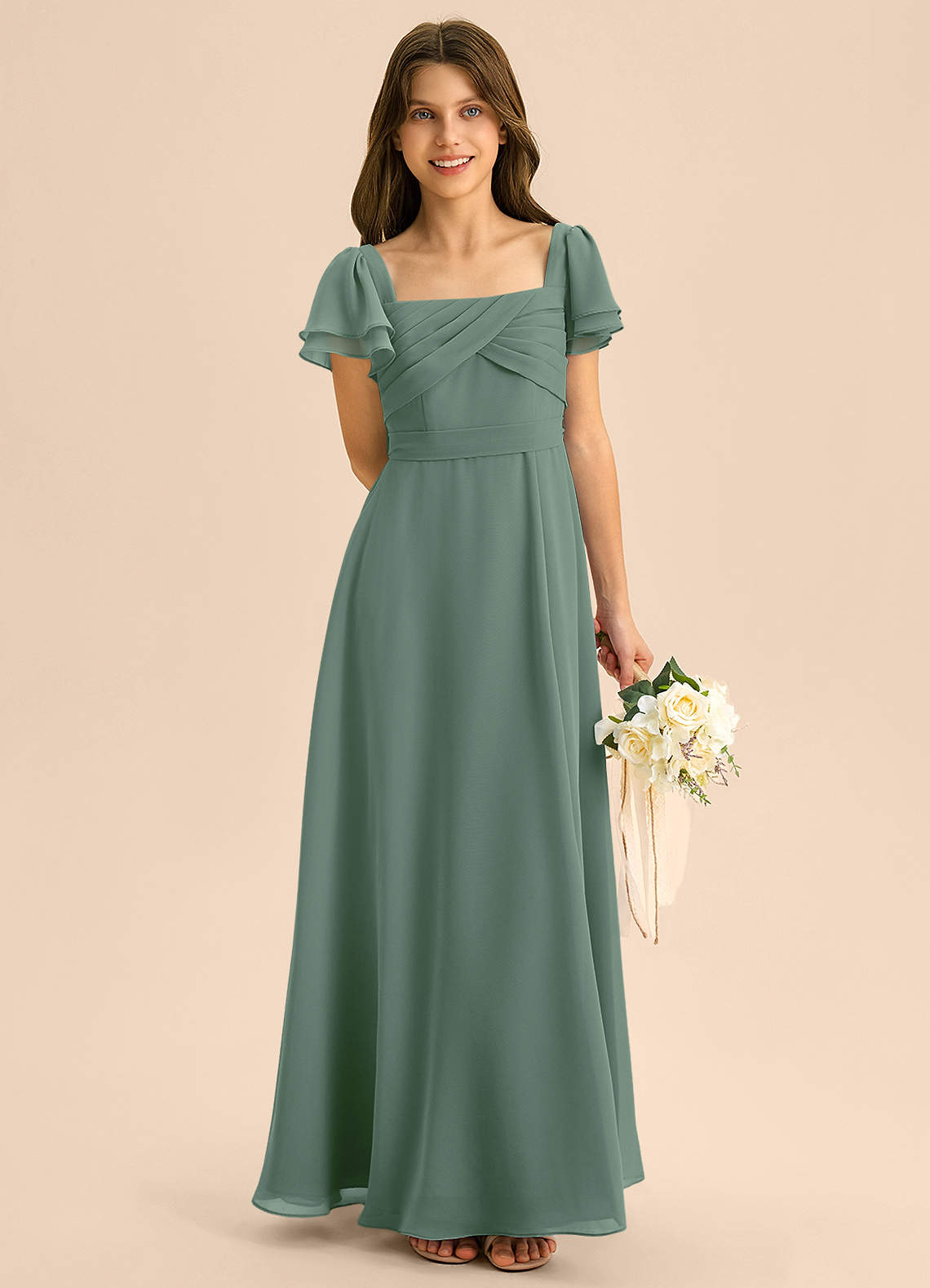 Eucalyptus A-Line Ruched Chiffon Dress