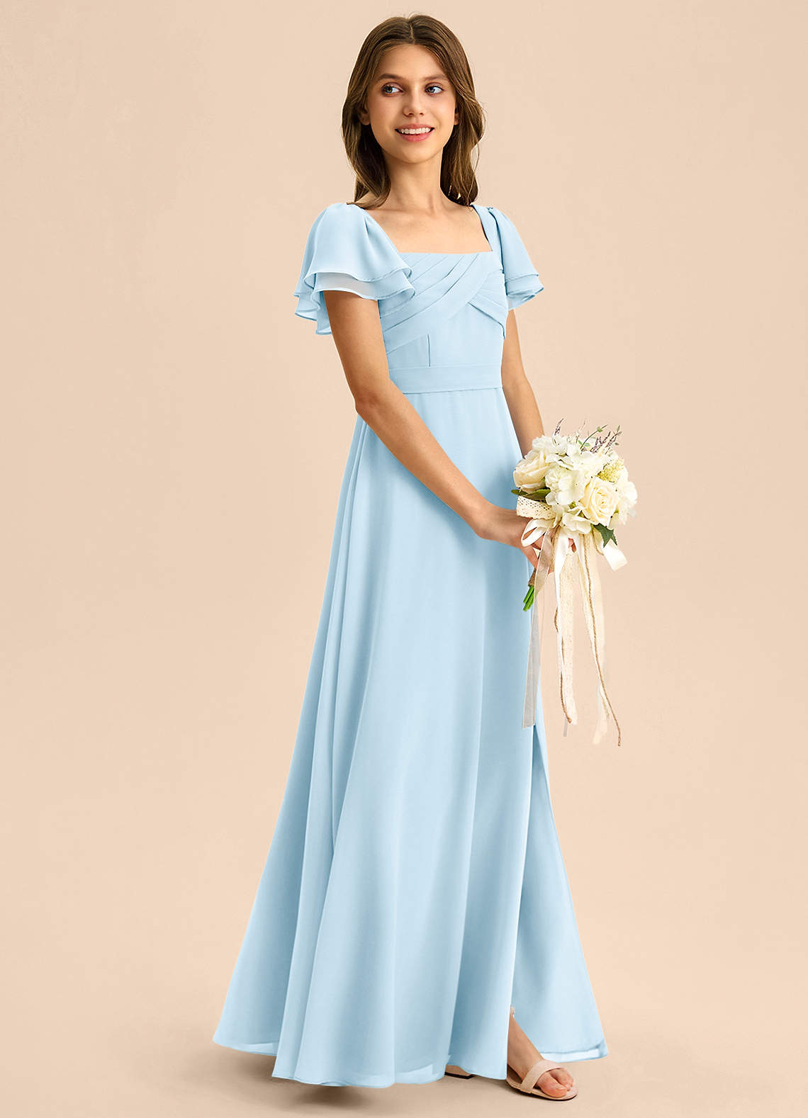 Sky Blue A-Line Ruched Chiffon Dress