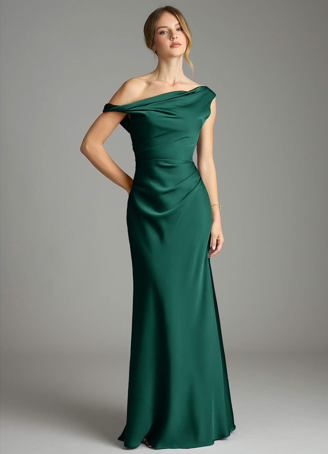 Emerald Mermaid Off the Shoulder Stretch Satin Dress