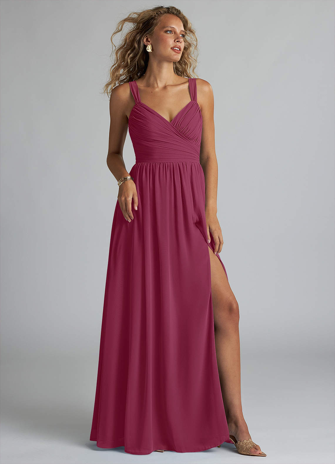 Mulberry A-Line V-Neck Pleated Chiffon Dress