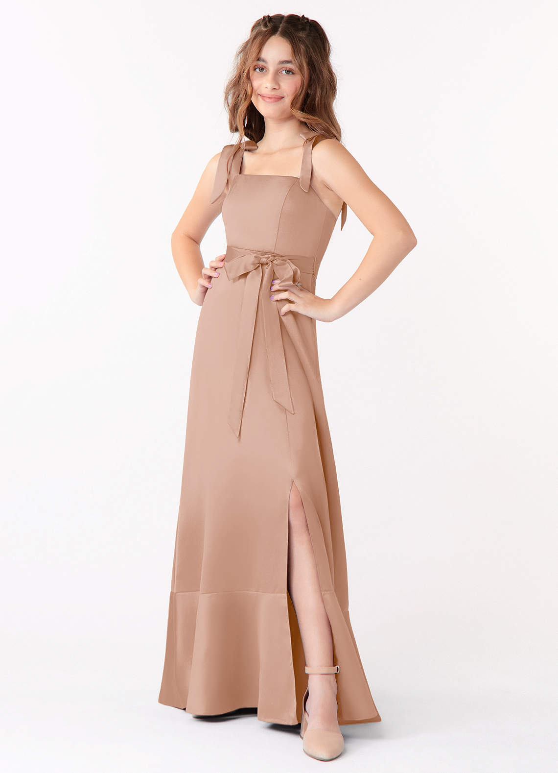 Champagne Rose A-Line Bow Matte Satin Dress