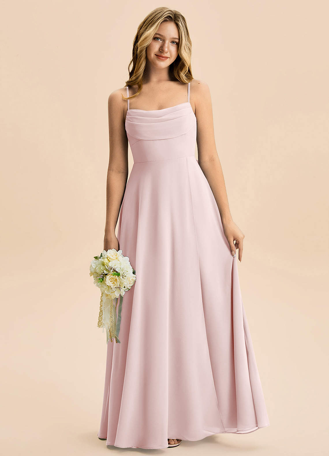 Blushing Pink A-Line Pleated Chiffon Dress