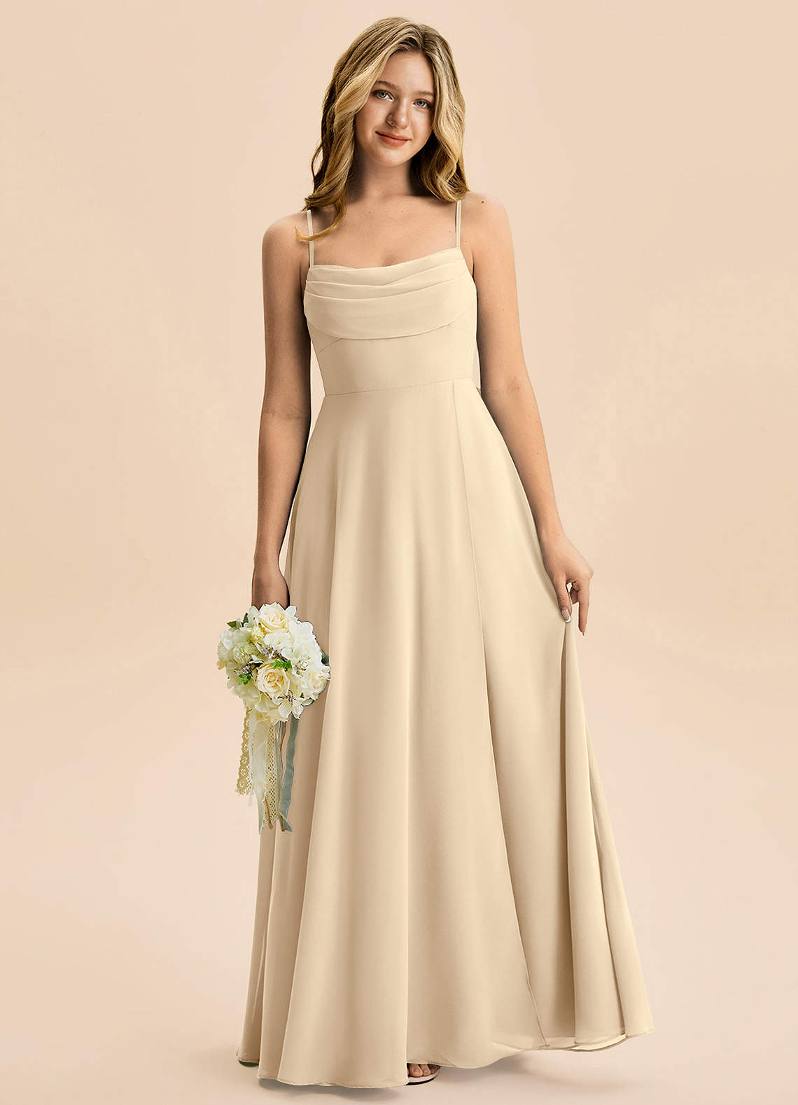 Champagne A-Line Pleated Chiffon Dress