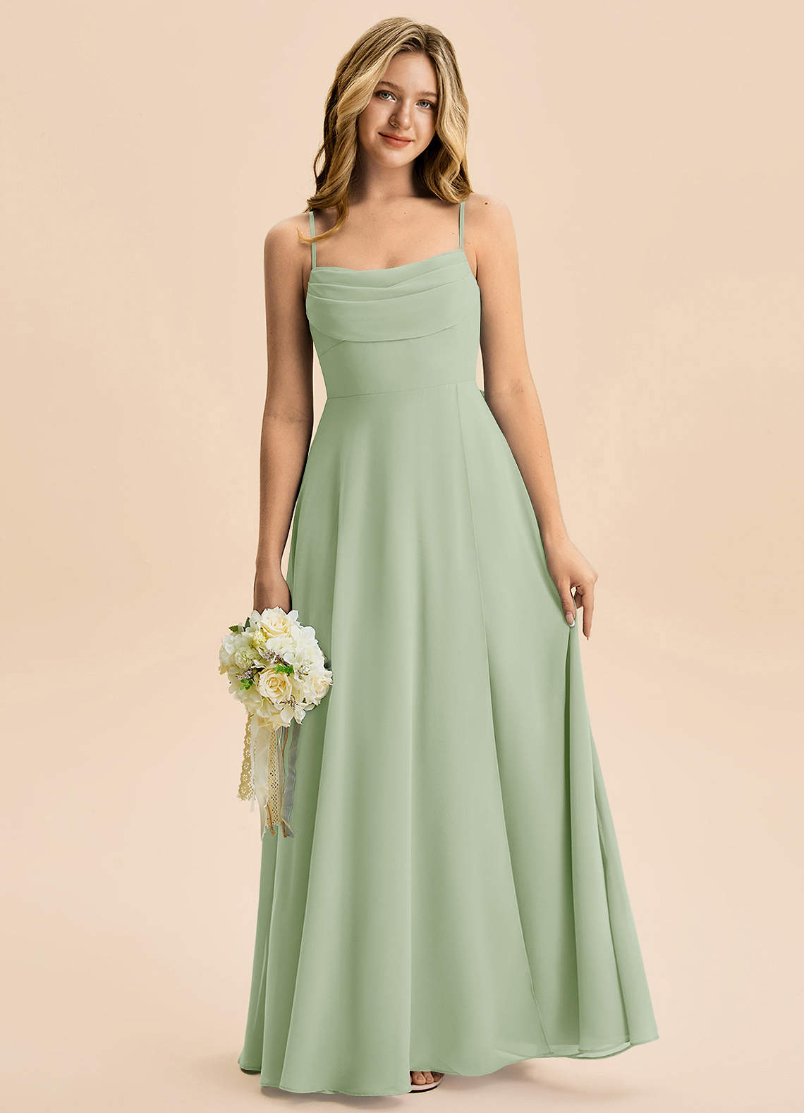 Dusty Sage A-Line Pleated Chiffon Dress