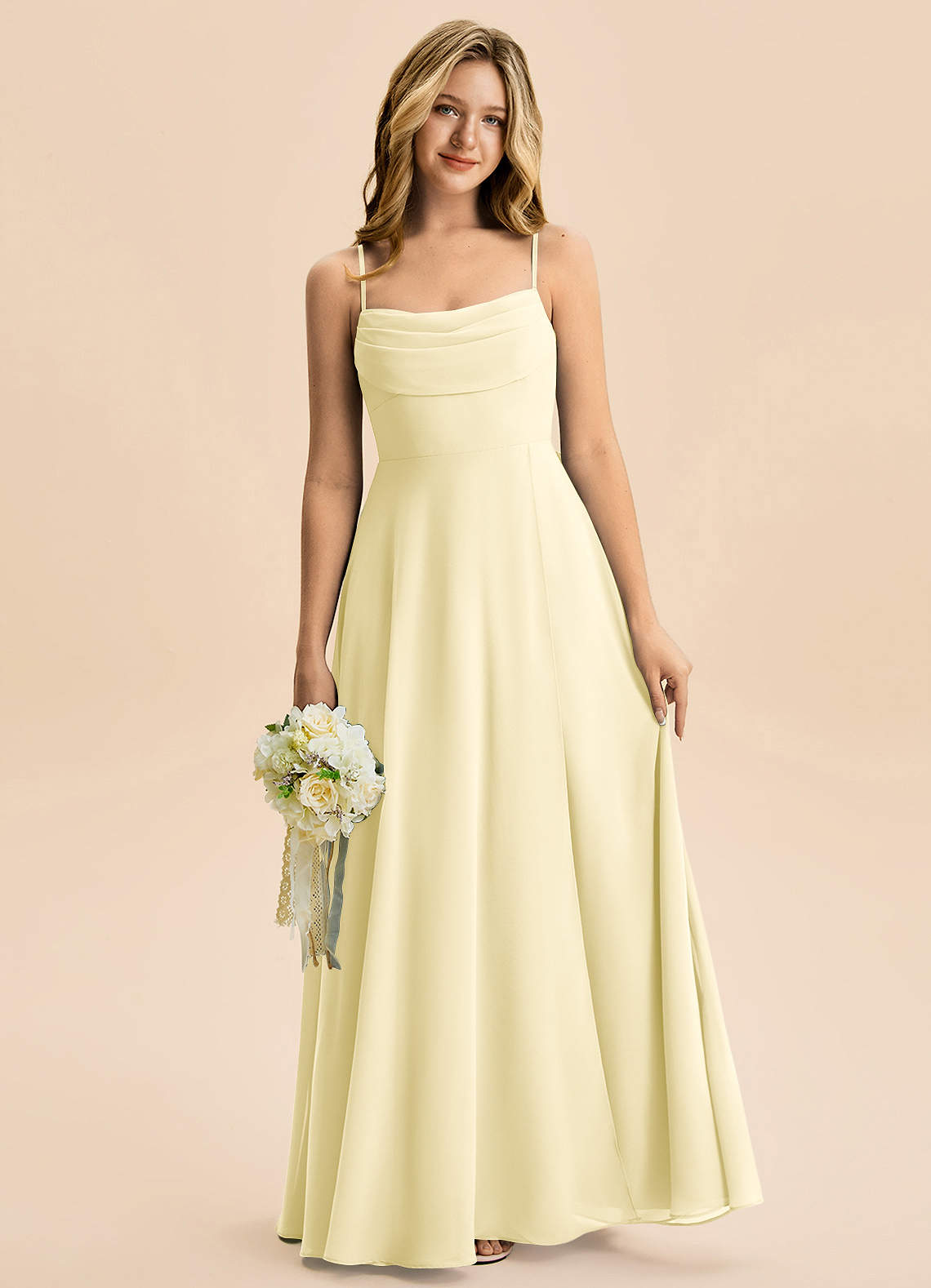 Lemon Sorbet A-Line Pleated Chiffon Dress