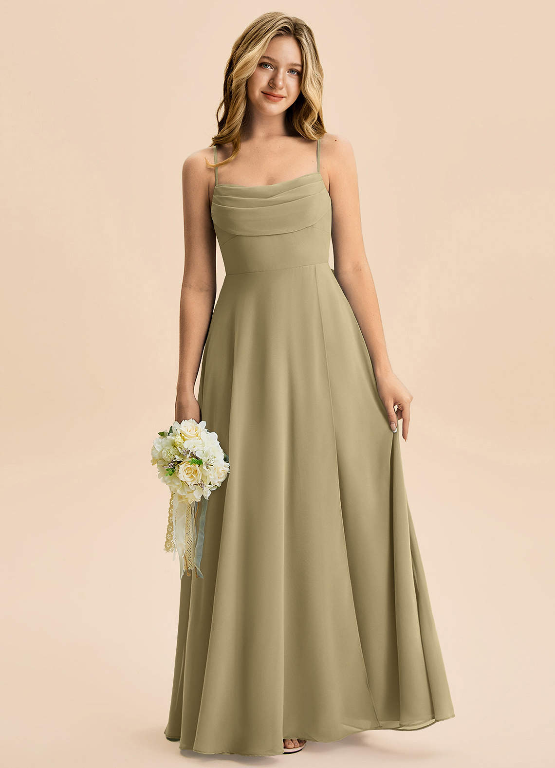Moss Green A-Line Pleated Chiffon Dress