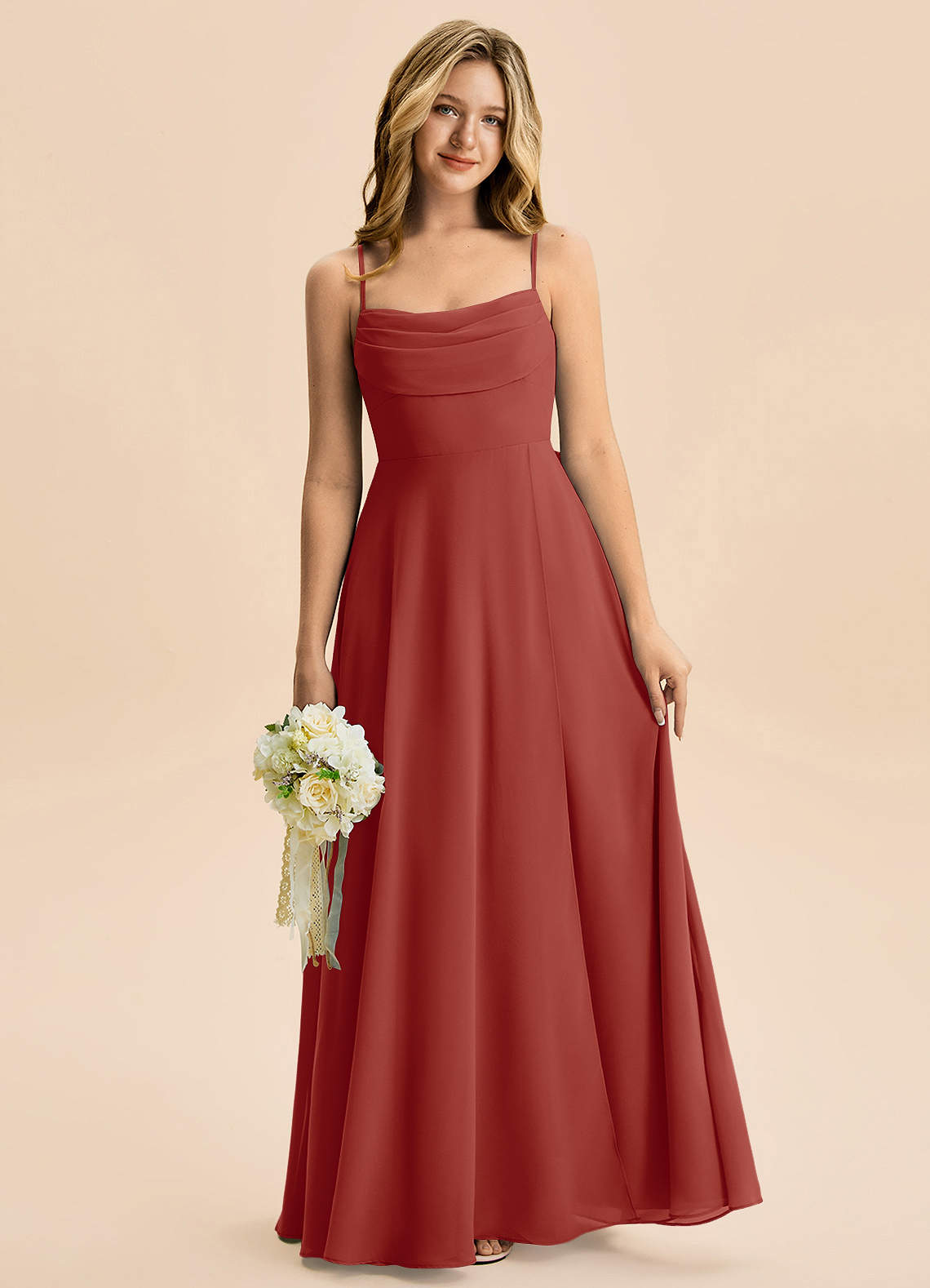 Terracotta A-Line Pleated Chiffon Dress