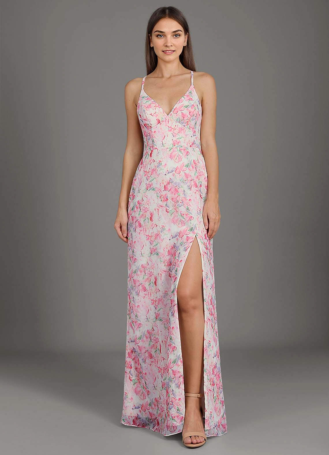 Abstract Watercolor Floral Sheath V-Neck Chiffon Dress