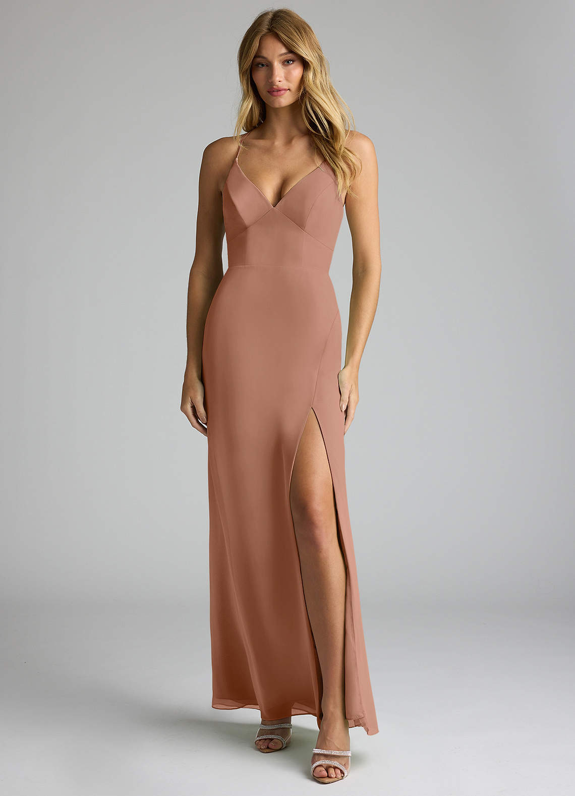 Bronzer Sheath V-Neck Chiffon Dress