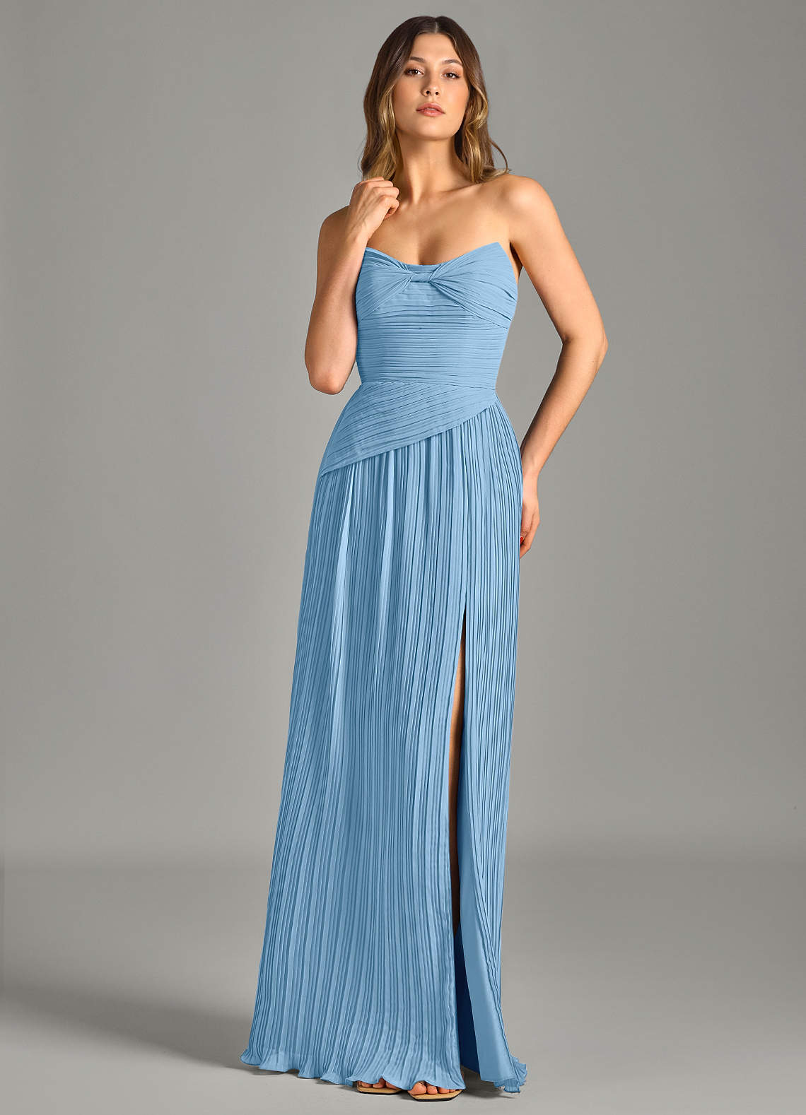 Steel Blue A-Line Strapless Chiffon Dress