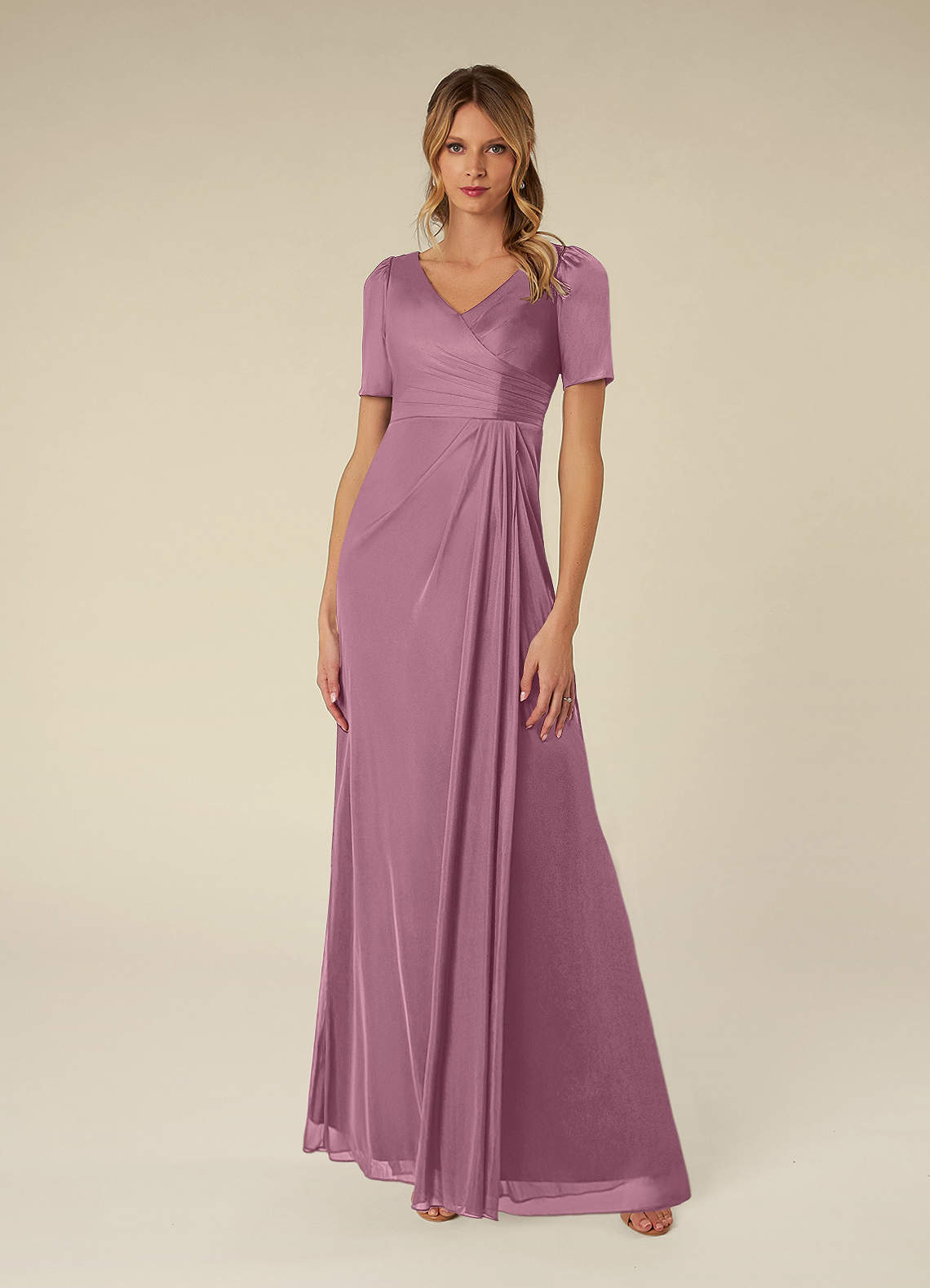 Vintage Mauve A-Line Pleated Mesh Dress