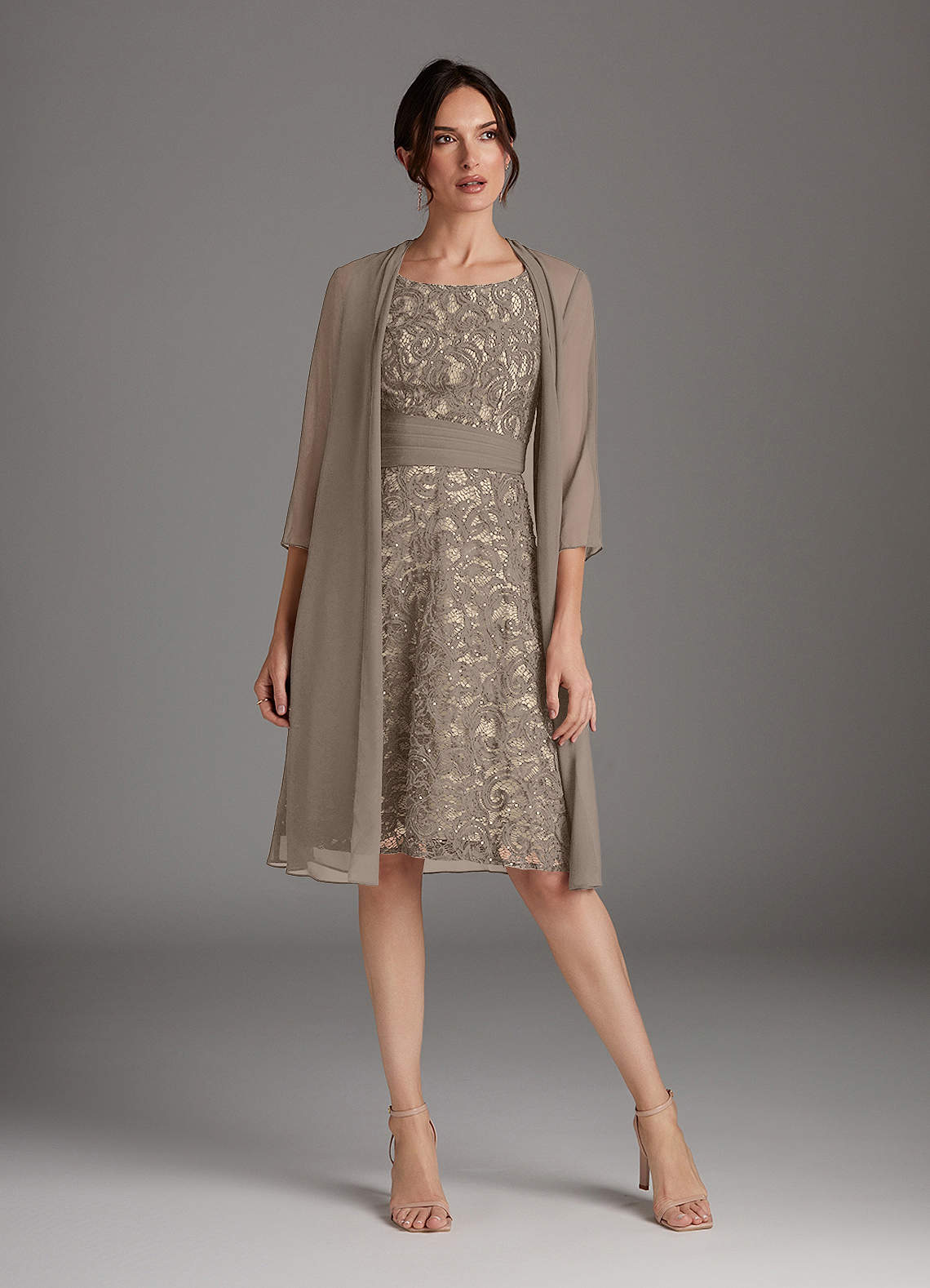 Taupe Champagne A-Line Scoop Sequins Chiffon Dress
