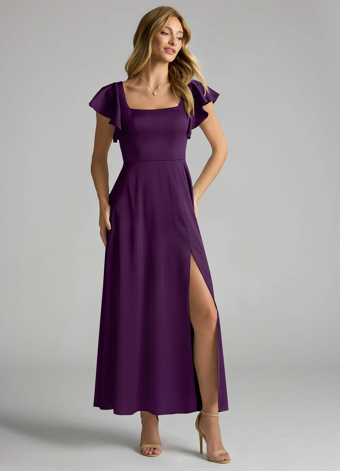 Grape A-Line Ruched Stretch Satin Dress