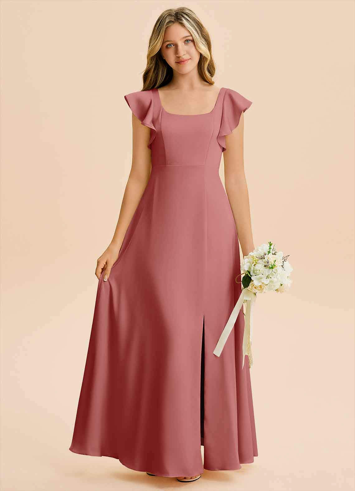 Antique Rose A-Line Side Slit Stretch Satin Dress