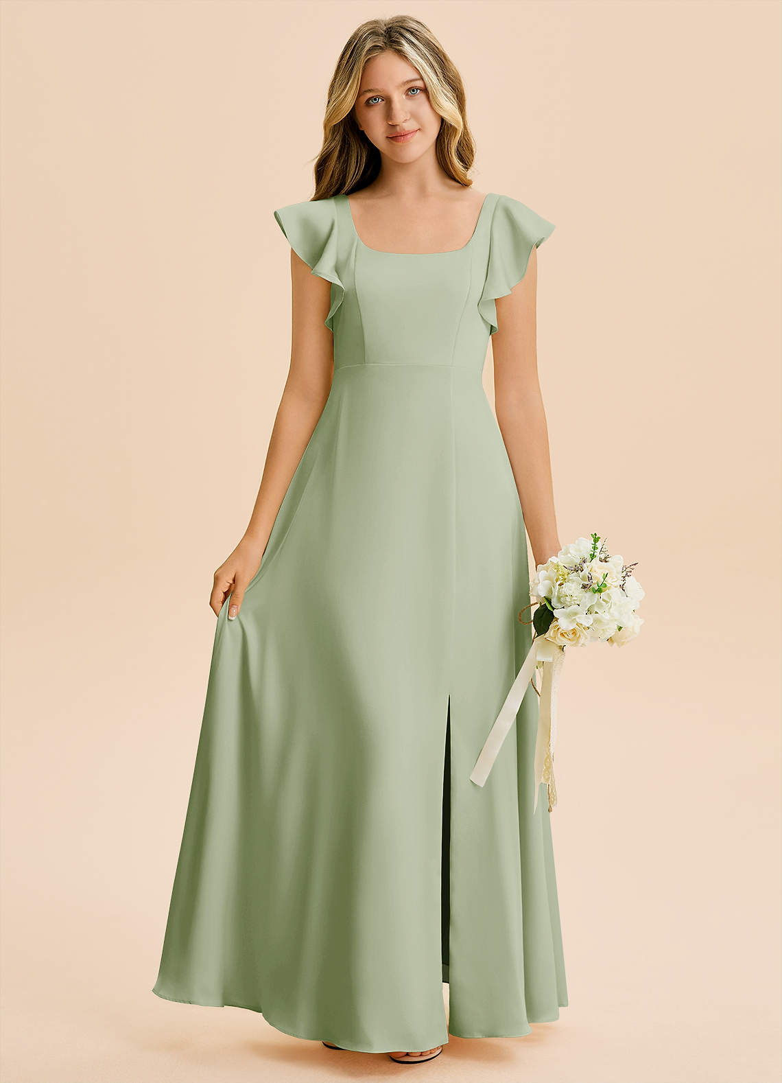 Dusty Sage A-Line Side Slit Stretch Satin Dress