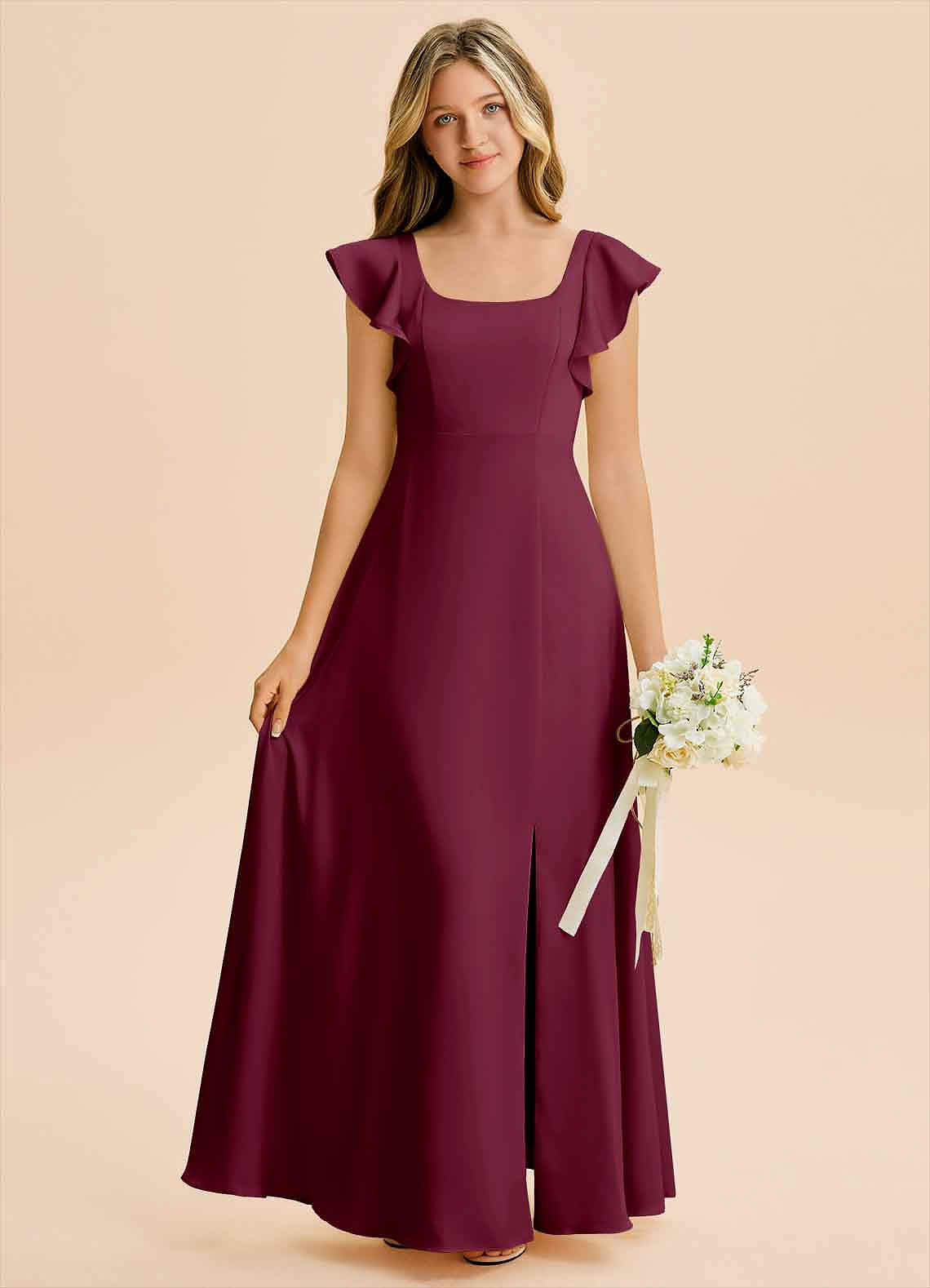 Mulberry A-Line Side Slit Stretch Satin Dress