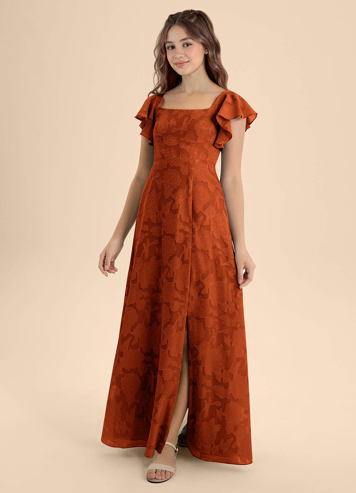 Paprika A-Line Bow Floral Burnout Dress