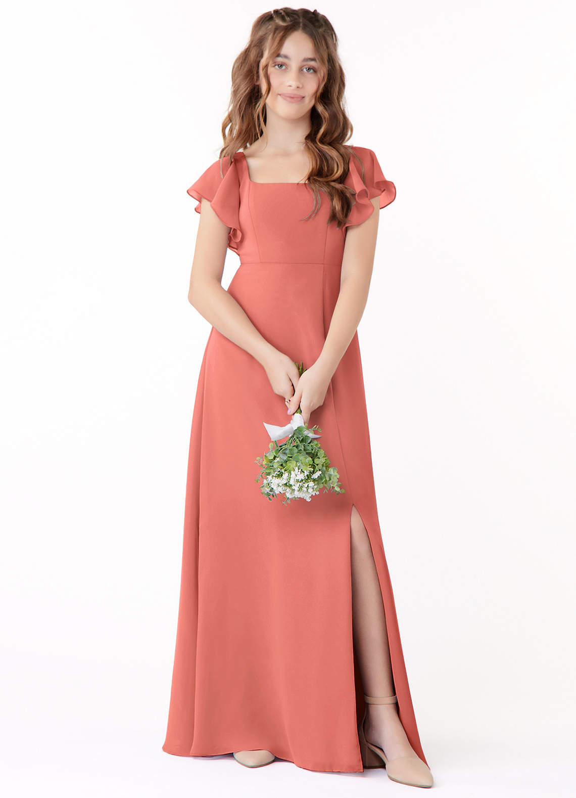 Salmon Pink A-Line Bow Chiffon Dress