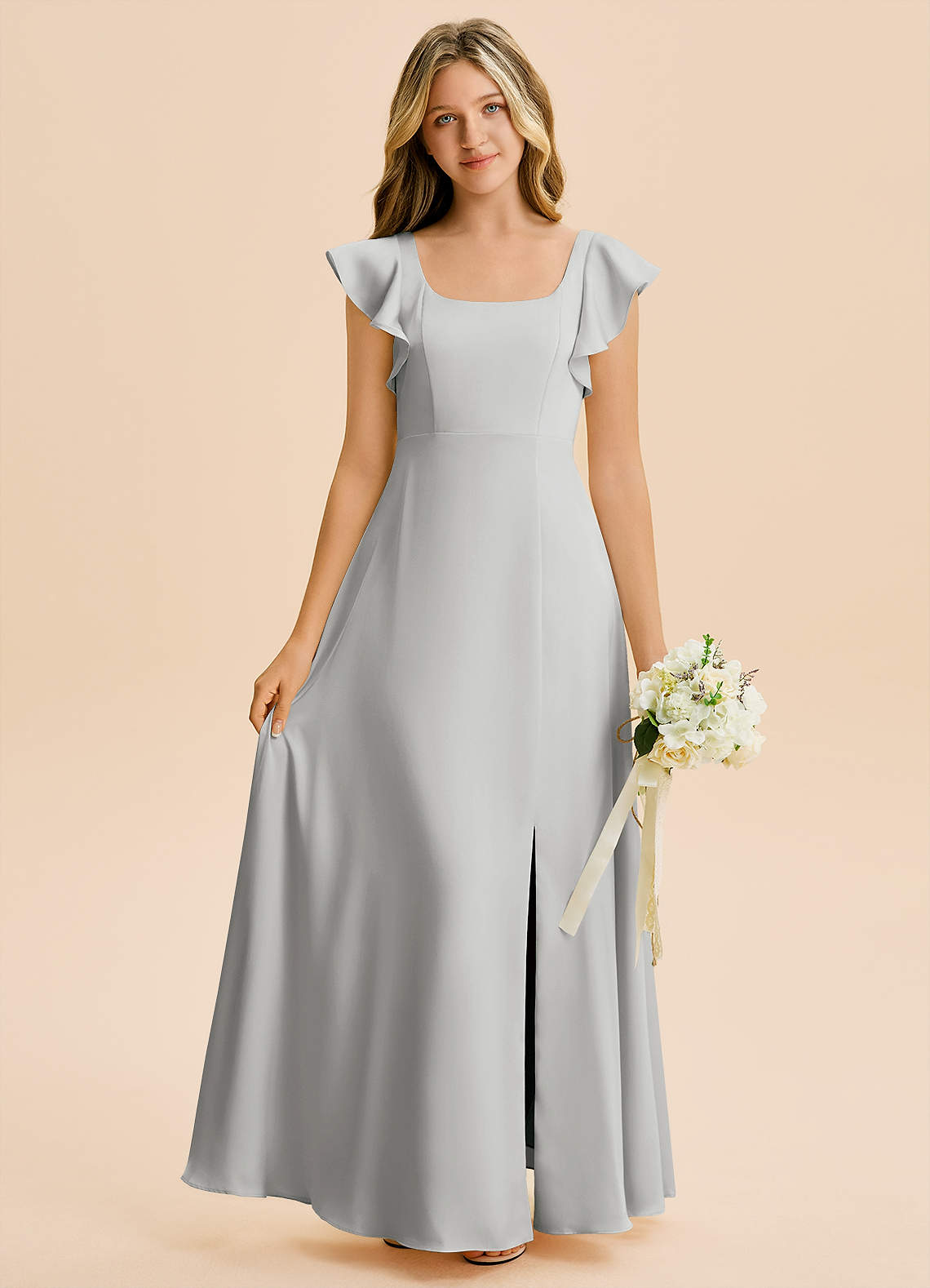Silver A-Line Side Slit Stretch Satin Dress