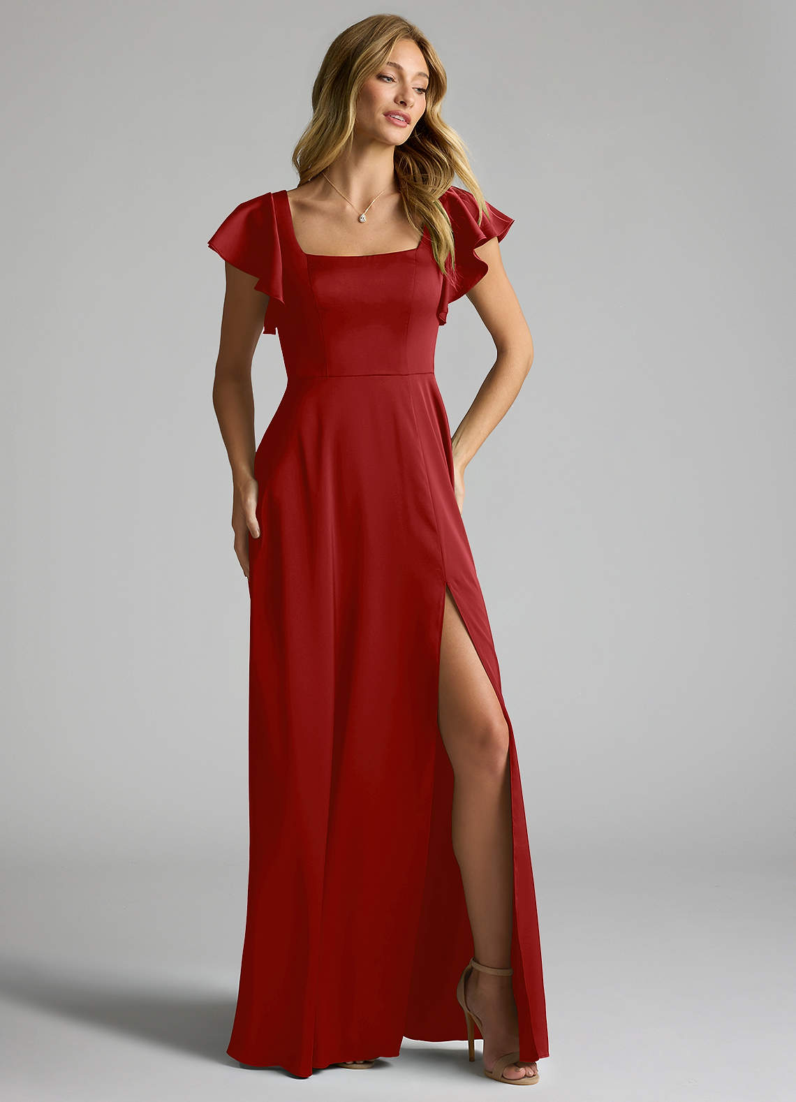 Pomegranate A-Line Bow Stretch Satin Dress