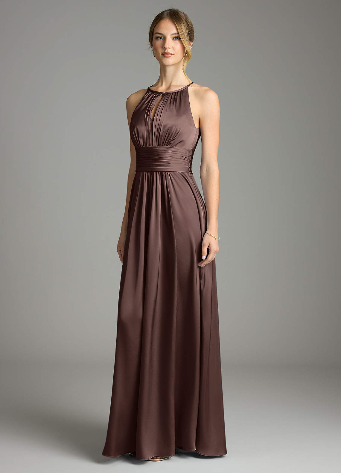 Ganache A-Line Pleated Stretch Satin Dress