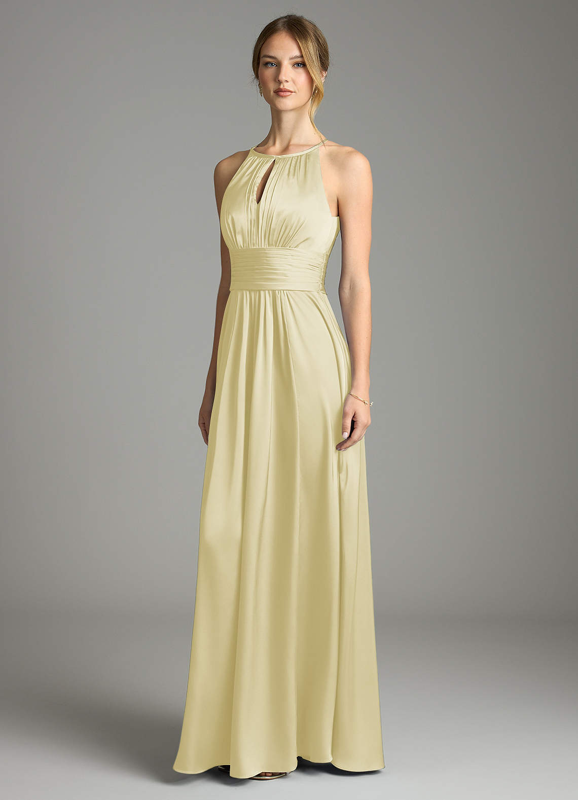 Lemon Sorbet A-Line Pleated Stretch Satin Dress