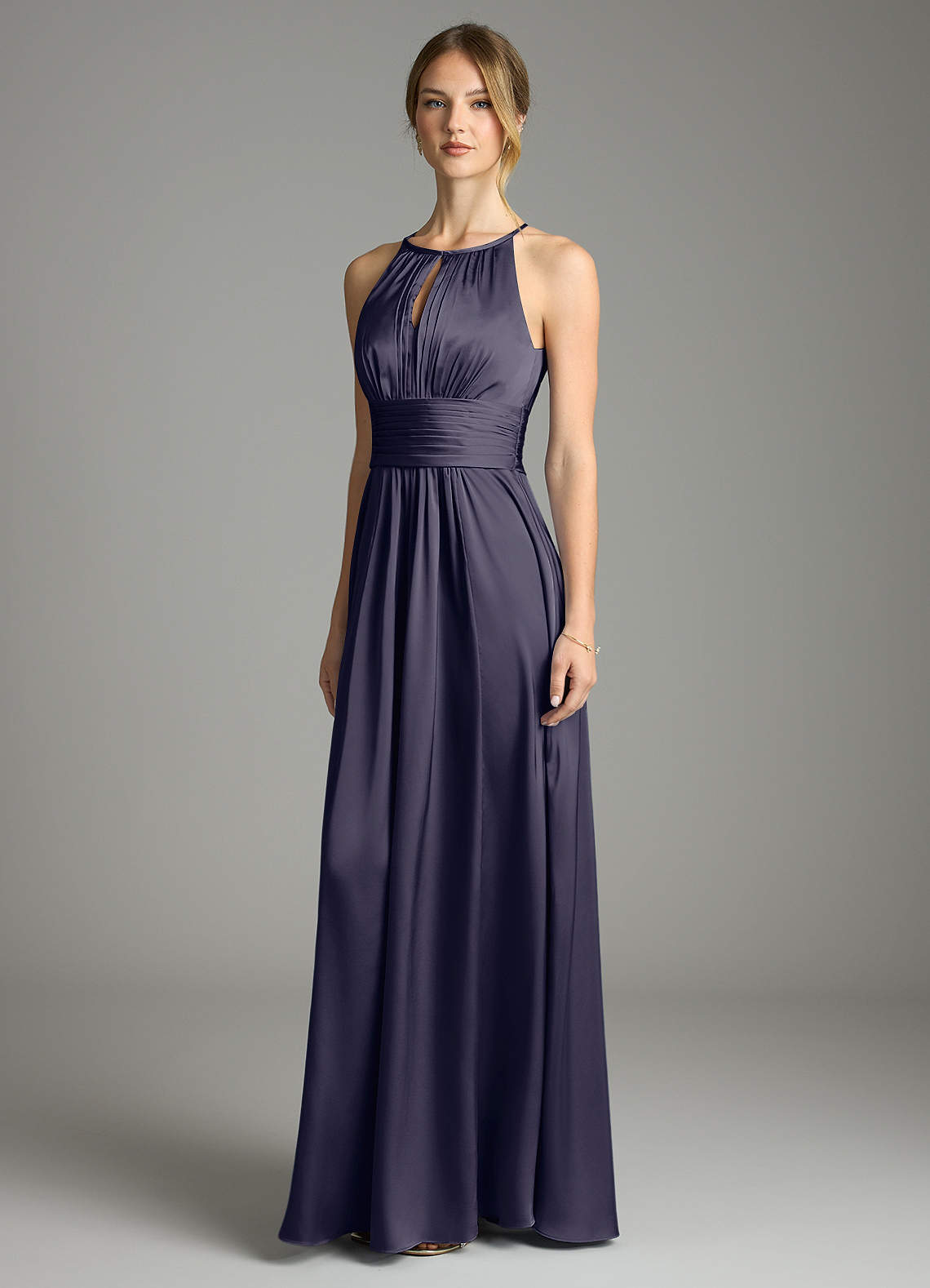 Stormy A-Line Pleated Stretch Satin Dress