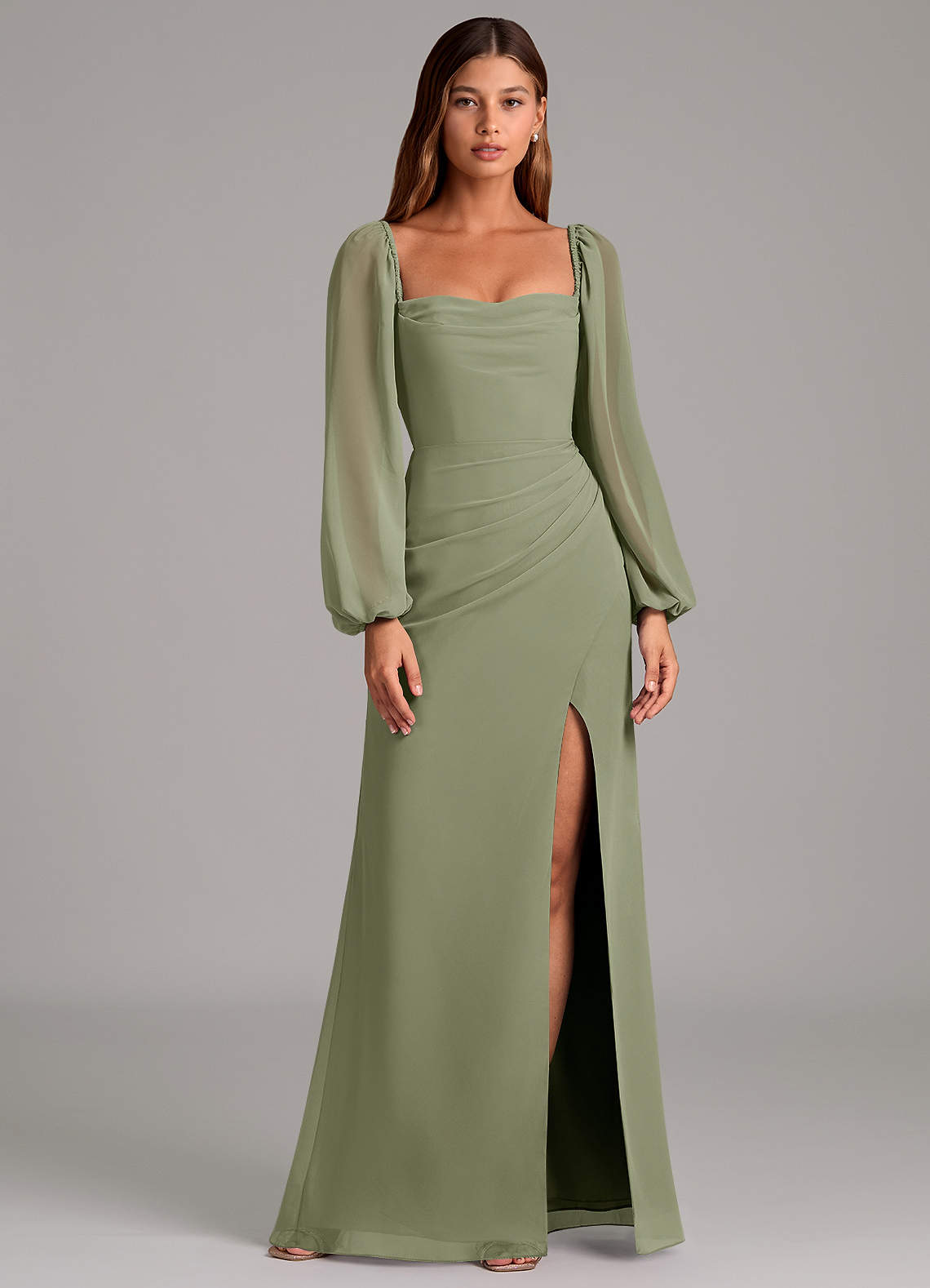 Pistachio Mermaid Long Sleeve Chiffon Dress