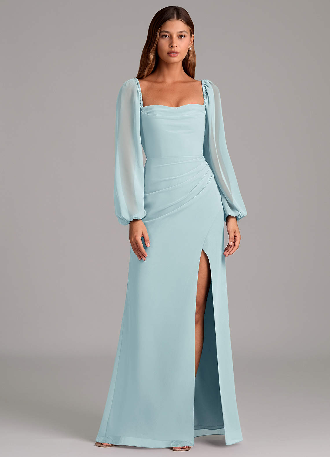 Sea Glass Mermaid Long Sleeve Chiffon Dress