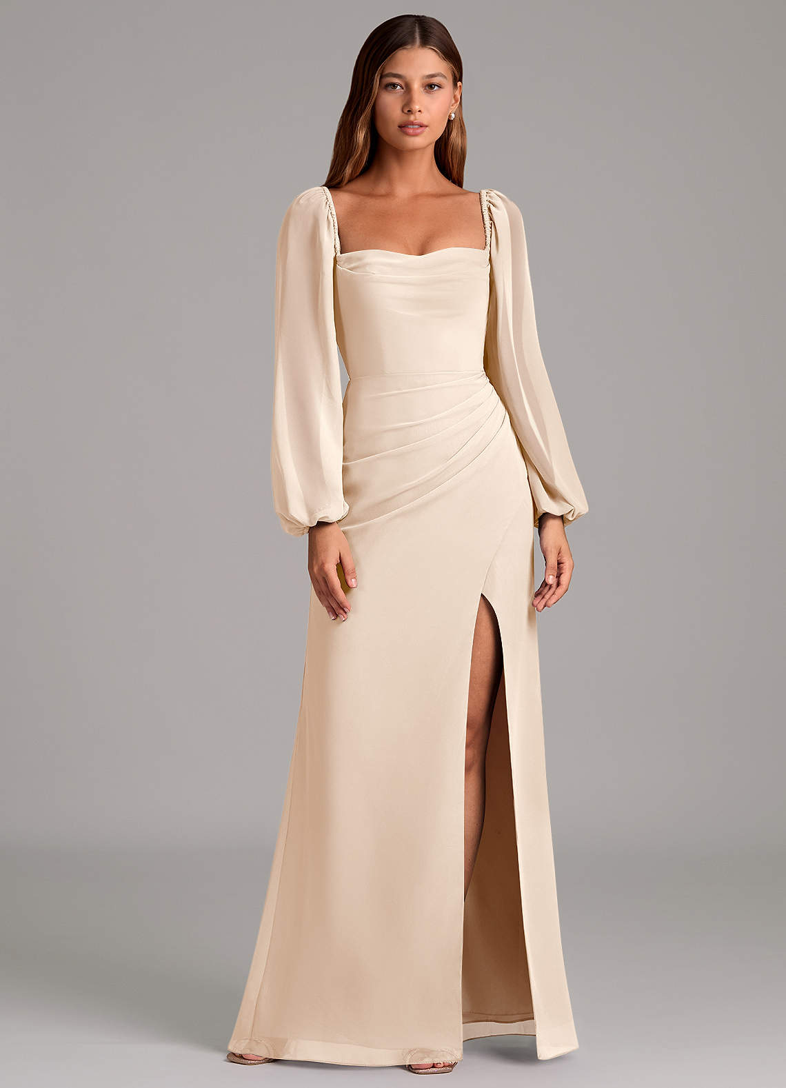 White Alabaster Mermaid Long Sleeve Chiffon Dress