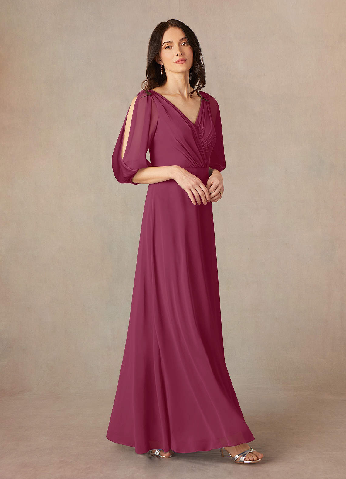 Mulberry A-Line V-Neck Ruched Chiffon Dress