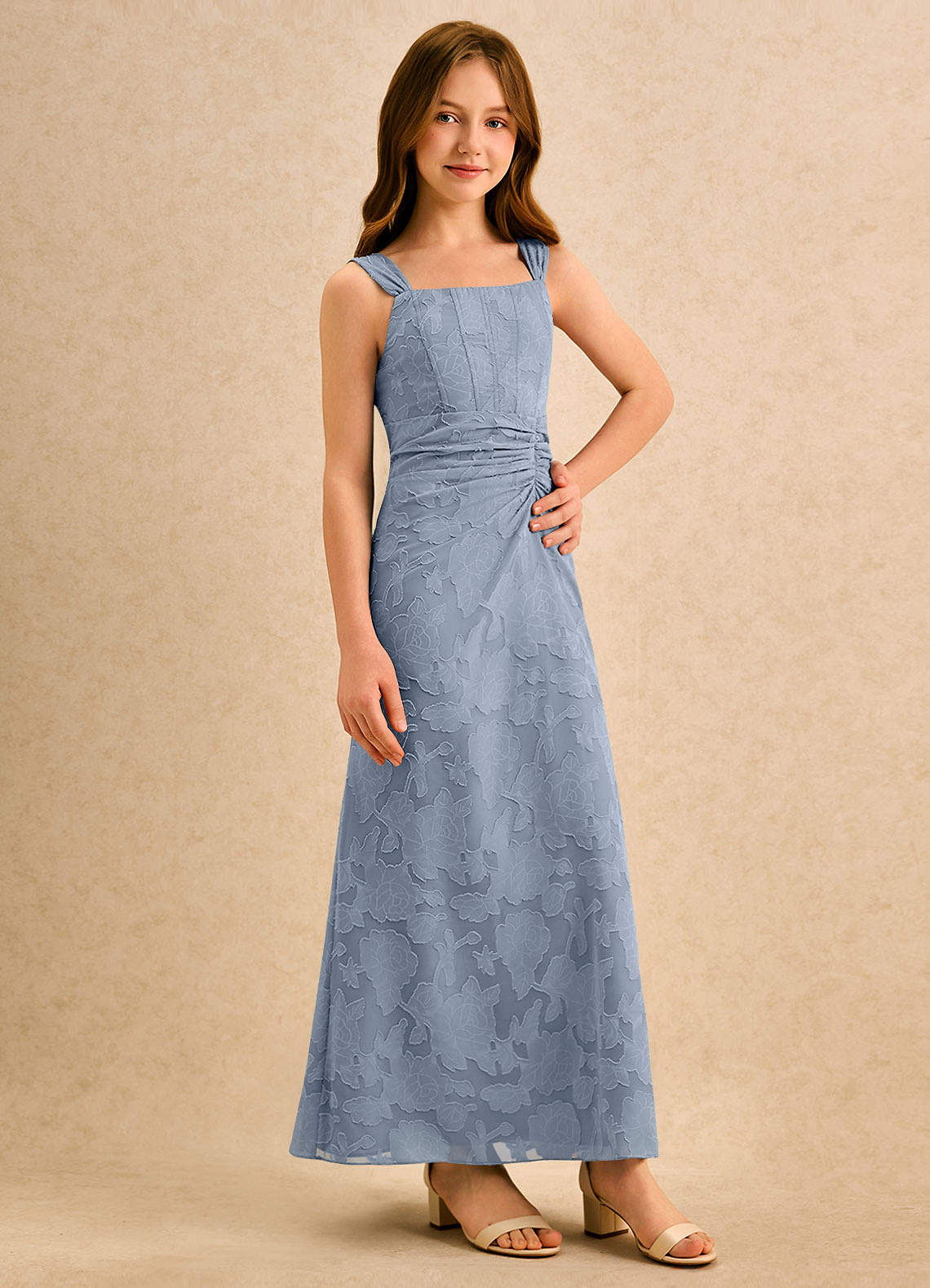 Dusty Blue A-Line Sleeveless Floral Burnout Dress