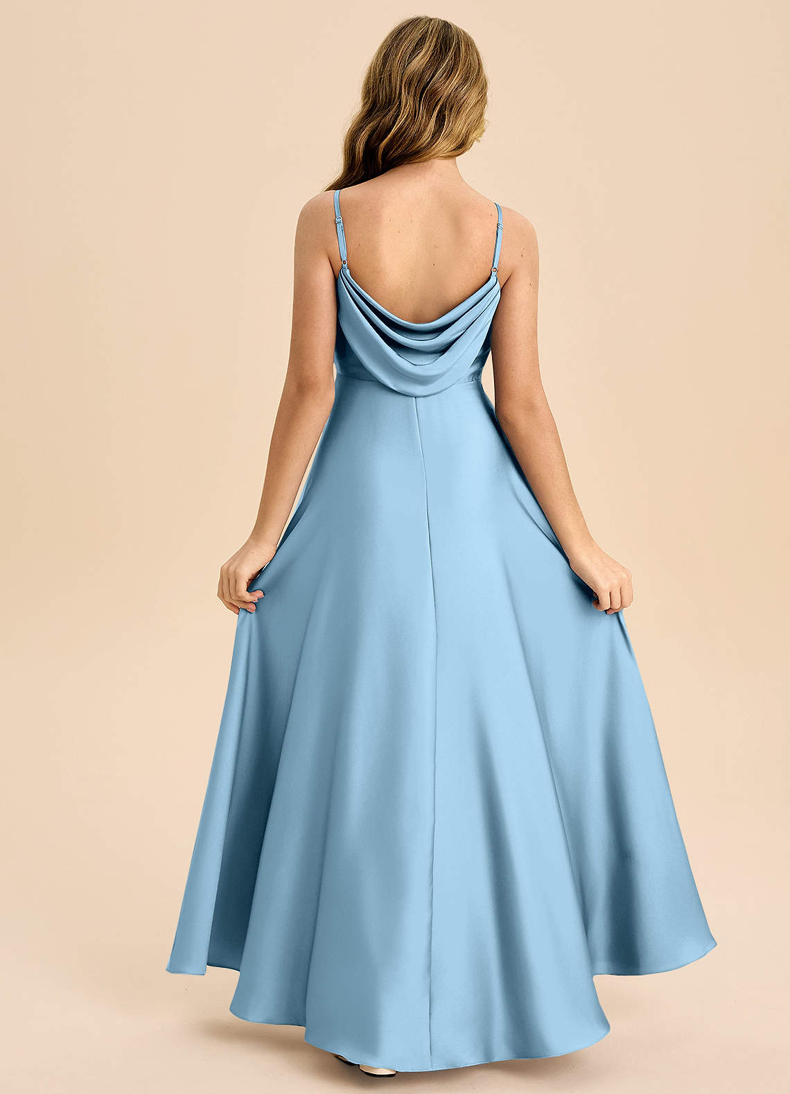 Steel Blue A-Line Pleated Stretch Satin Dress