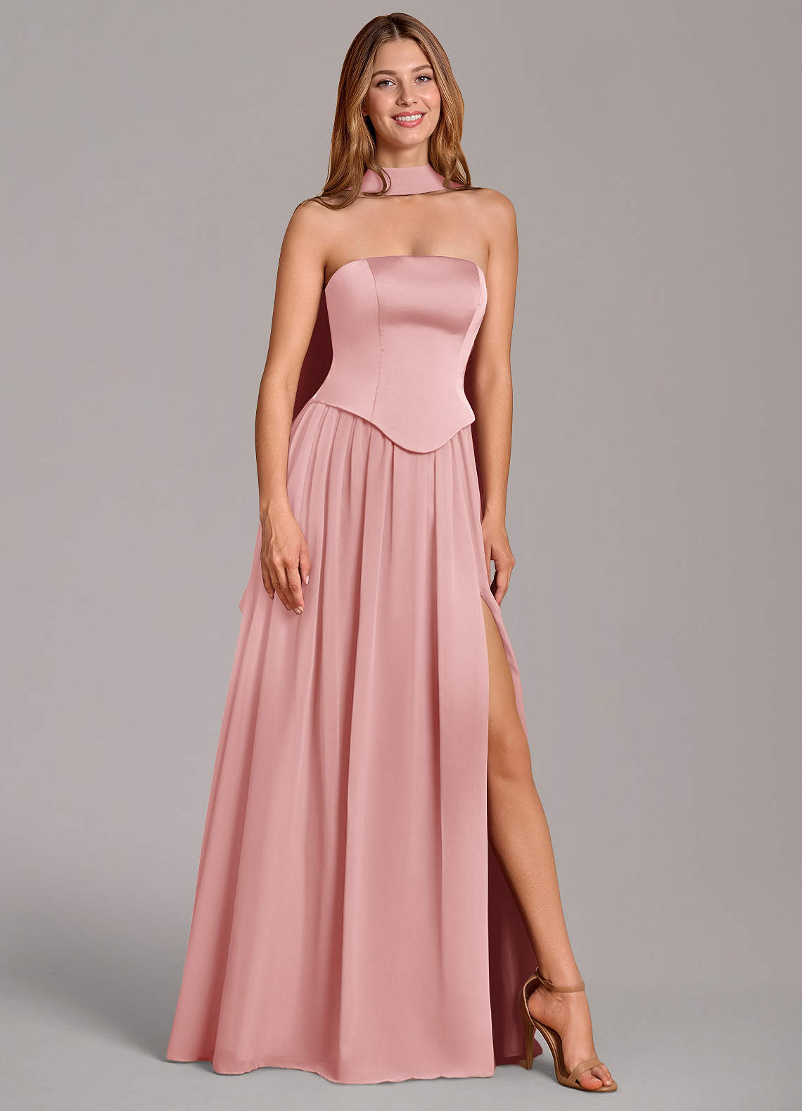 Powder Pink A-Line Corset Stretch Satin Convertible Dress
