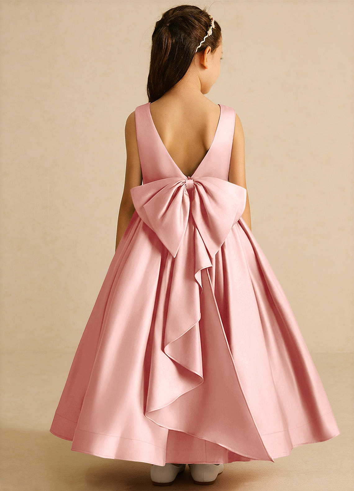 Rosette Ball-Gown Pleated Matte Satin Dress