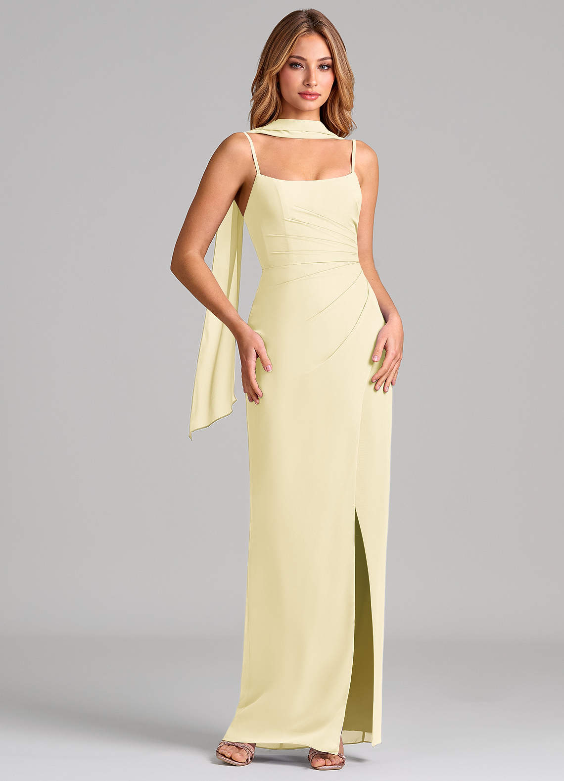 Lemon Sorbet Sheath Pleated Chiffon Dress