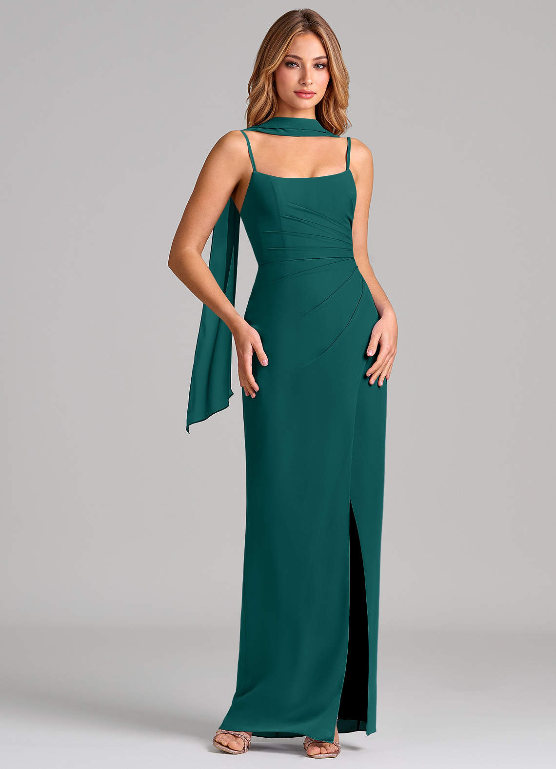 Peacock Sheath Pleated Chiffon Dress